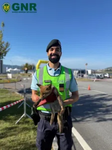 O animal foi entregue aos militares da Guarda durante a ação de policiamento de uma prova desportiva, por um casal de cidadãos que o encontrou nas imediações do percurso. Após avaliação preliminar, verificou-se que a raposa apresentava sinais de desorientação e uma lesão numa das patas, tendo sido acolhida em segurança, mantida em local adequado, alimentada e monitorizada até ser recolhida por técnicos do Instituto da Conservação da Natureza e das Florestas (ICNF), entidade competente para garantir os cuidados veterinários necessários e a sua posterior reintrodução no habitat natural.