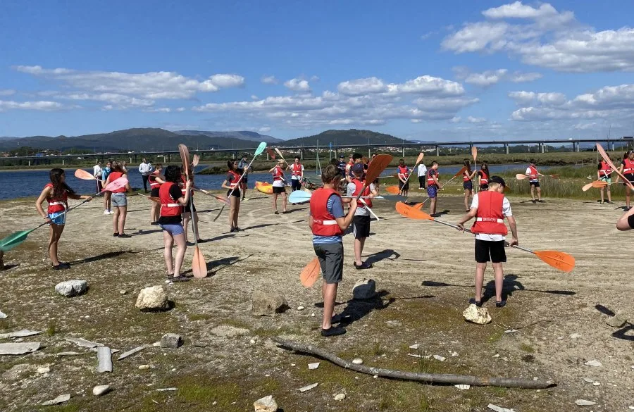 Em intercâmbio com as escolas Pintor José de Brito e Frei Bartolomeu dos Mártires, os alunos alemães e galegos integraram-se com os seus colegas de turma e foram experimentar os kayaks, numa sessão oferecida pelo Darque Kayak Clube de Viana, em pleno Rio Lima.