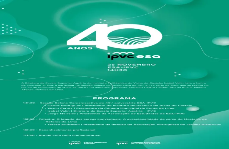 A celebração dos 40 anos da Escola Superior Agrária do Politécnico de Viana do Castelo ganha este ano um significado especial, ao cruzar passado, presente e futuro da instituição. Para além da efeméride, o dia de aniversário da Escola, centrada no mosteiro de Refoios do Lima, em Ponte de Lima, mas que se estende ao longo de cerca de 26 hectares, servirá também para apresentar o novo mestrado em Enfermagem Veterinária Médico-Cirúrgica, que irá abrir já no segundo semestre e que será o primeiro em Portugal com abrangência clínica a espécies pecuárias, equinos, animais de companhia, selvagens e exóticos. Esta aposta numa oferta formativa inovadora reforça a missão da Escola Superior Agrária (ESA-IPVC) numa formação de excelência, que responde às necessidades emergentes do setor.