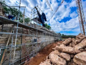 Os trabalhos de reconstrução do pano de muralha do Baluarte de S. José, na Fortaleza de Valença, encontram-se numa fase decisiva, com a reconstrução em curso do segundo troço da estrutura, que ruiu a 1 de janeiro de 2023.