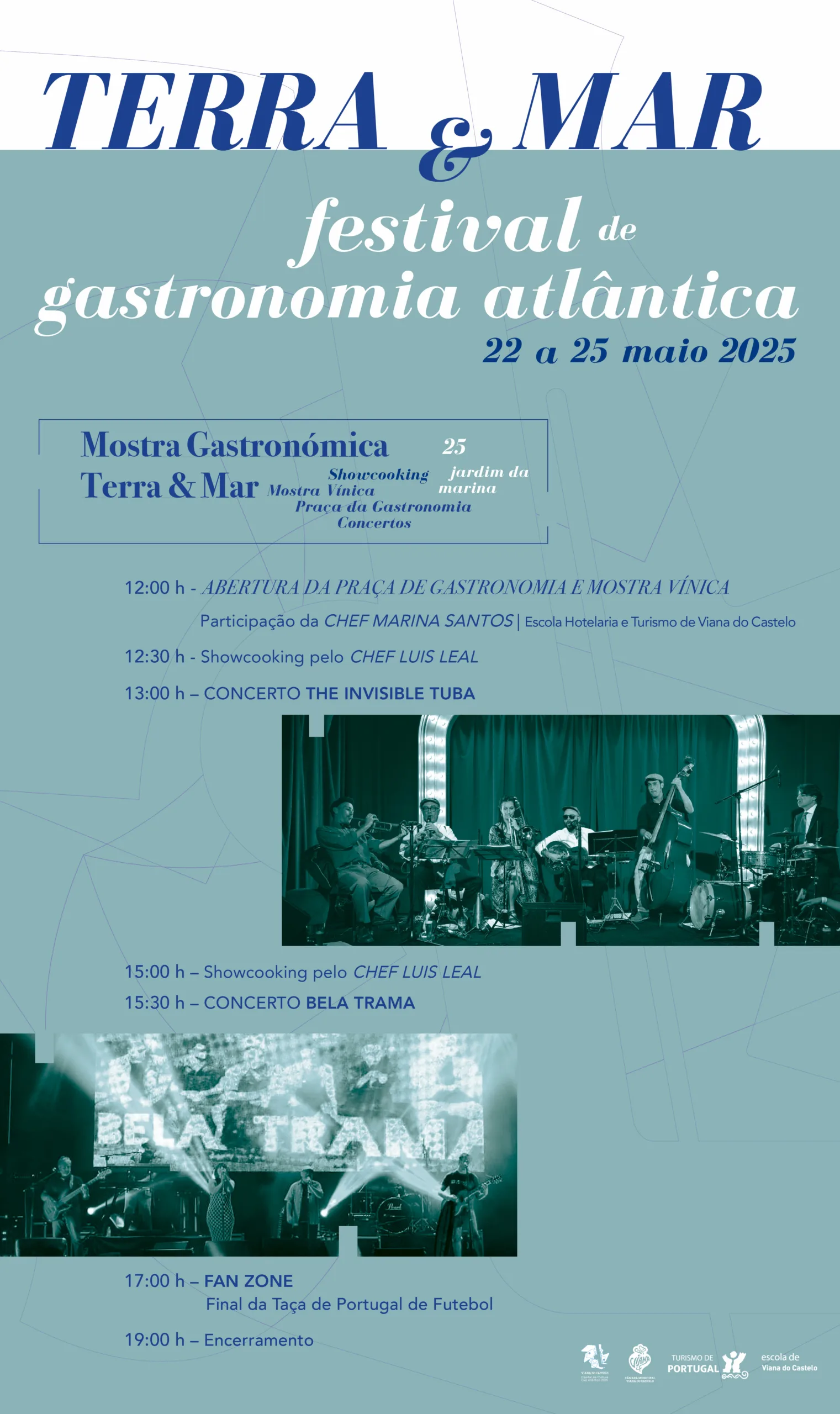 Integrado em Viana do Castelo – Capital da Cultura do Eixo Atlântico e em plena celebração do Vale do Lima como Região Europeia da Gastronomia e Vinhos 2025, acontece, de 22 a 25 de maio, o TERRA & MAR – Festival de Gastronomia Atlântica, que integra o Wine & Blues Festival (23 e 24 de maio), no Jardim da Marina.