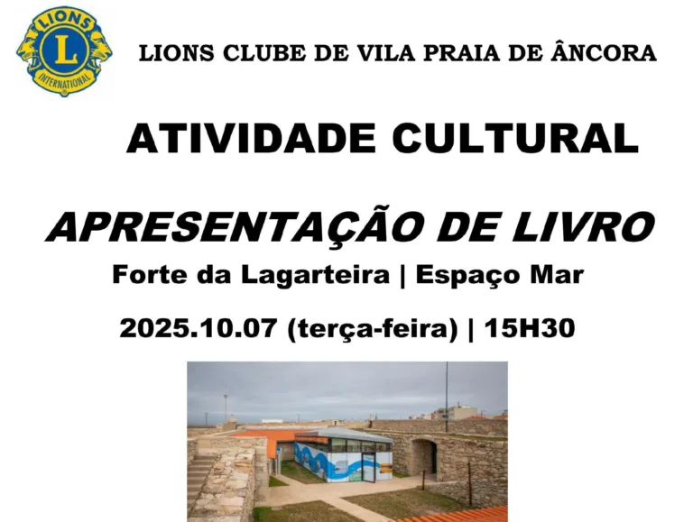 A data será no próximo dia 7 de outubro (terça-feira), pelas 15,30 horas, no Espaço Mar no Forte da Lagarteira junto ao Portinho de Vila Praia de Âncora.