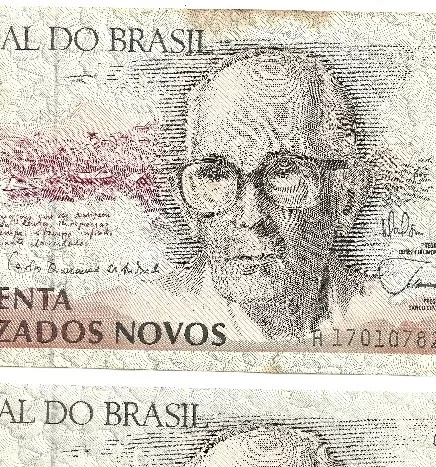 Drummond nas cédulas de 50 cruzados novos e cruzeiros. Março 1989 a Setembro 1992