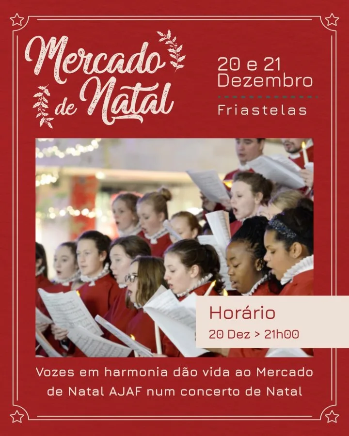 A edição do Mercado de Natal AJAF 2025 decorrerá nos dias 20 e 21 de dezembro, já no próximo fim de semana. Além das atividades propostas no adro, na tenda gigante, no palco, no passal, estão previstos alguns actos e cerimónias na igreja paroquial. Esta será a programação completa: