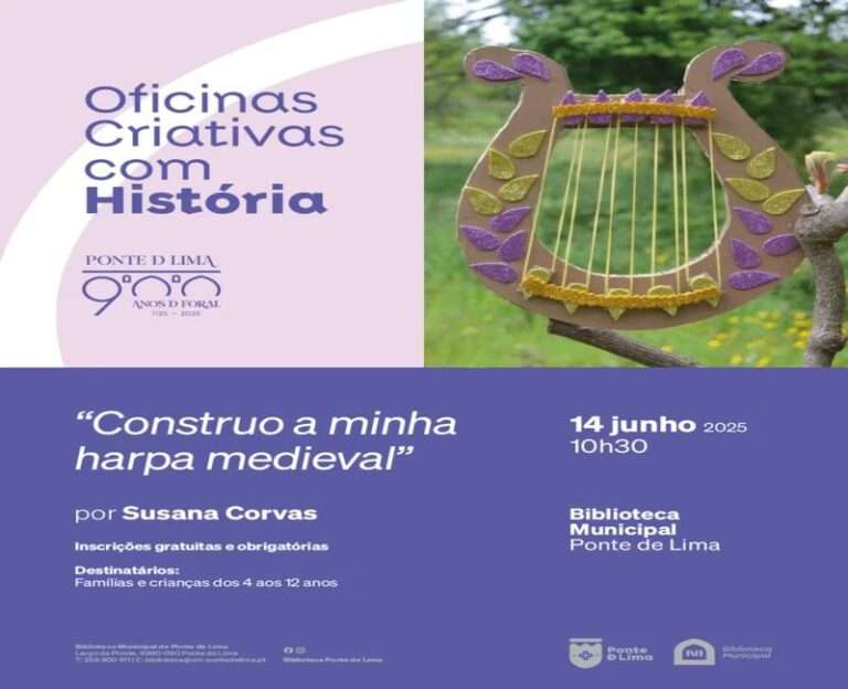 A próxima atividade está agendada para o dia 14 de junho, na Biblioteca Municipal de Ponte de Lima, e convida crianças entre os 4 e os 12 anos, acompanhadas pelas suas famílias, a embarcarem numa viagem criativa com o tema “A Minha Harpa Medieval”.