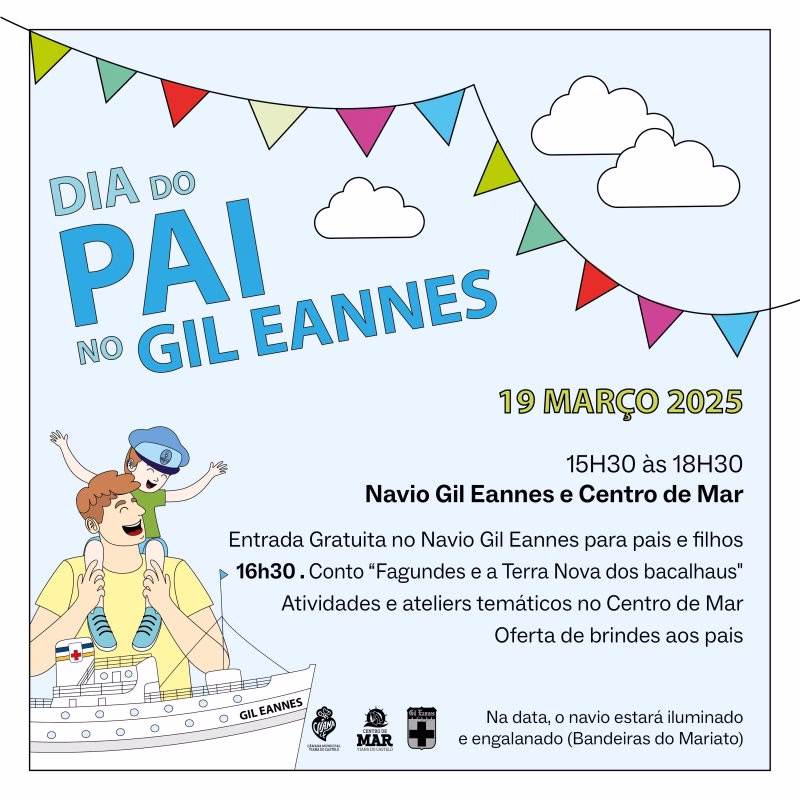 Viana do Castelo vai celebrar, no dia 19 de março, o Dia do Pai e os 70 anos do lançamento ao mar do navio hospital Gil Eannes com um programa para pais e filhos e entradas livres no museu flutuante.A Câmara Municipal de Viana do Castelo e a Fundação Gil Eannes vão promover um programa comemorativo conjunto que inclui um conjunto de iniciativas, das 15h30 às 18h30. Durante esse horário, serão promovidas atividades e ateliers temáticos no Centro de Mar. Às 16h30, será encenado o conto “Fagundes e a Terra Nova dos Bacalhaus”, que nos fala da viagem de João Álvares Fagundes até à Terra Nova, onde o mareante vianense e sua tripulação encontraram um “mar cheio de bacalhaus”. Esta teatro de sombras foi dinamizado pela Casa dos Nichos em parceria com o Centro de Mar com o objetivo de falar aos mais novos das expedições de Álvares Fagundes até às províncias marítimas americanas.Na data, o navio estará iluminado e engalanado (Bandeiras do Mariato) e será promovida uma oferta de brindes aos pais.O navio “Gil Eannes” que está atracado na antiga doca comercial de Viana do Castelo é o segundo da sua geração. Foi lançado ao mar, posto a flutuar, no dia 19 de março de 1955, após construído nos Estaleiros Navais de Viana do Castelo por encomenda do Grémio de Armadores de Navios da Pesca do Bacalhau.Este segundo Gil Eannes veio substituir um antigo cargueiro a vapor, da companhia alemã “Deutsche Dampfschiffarts GeselIschaft Hansa”, que havia sido construído em 1914 e que ficara retido num porto nacional logo no princípio da sua existência devido ao conflito mundial. Dois anos mais tarde, devido à declaração de guerra da Alemanha a Portugal, foi apresado e sofreu substituição de bandeira. Este primeiro navio, denominado ”Lahneck”, passou então a chamar-se “Gil Eannes” e ficou sob a jurisdição da Marinha de Guerra Portuguesa. A partir de então, teve diversas funções: transporte de tropas, cruzador, marinha mercante e navio-hospital. O que conhecemos atualmente, o segundo Gil Eannes, iniciou a sua atividade como hospital em 1955, apoiando durante décadas, a frota bacalhoeira portuguesa que atuava nos bancos da Terra Nova e Gronelândia. A sua principal função foi prestar assistência hospitalar aos pescadores e tripulantes da frota bacalhoeira, mas também foi navio capitania, navio correio, navio rebocador, garantindo abastecimento de mantimentos, redes, isco e combustível aos navios da pesca do bacalhau. Ficou, durantes anos, abandonado no cais do porto de Lisboa, até ser vendido a um sucateiro para abate em 1997.Após ser resgatado da sucata pela autarquia, chegou a Viana do Castelo a 31 de janeiro em 1998, para receber obras de reabilitação, tendo aberto ao público como navio-museu nesse ano. Desde então, desempenha uma importante missão como espaço cultural e expositivo, sendo o museu mais visitado do concelho.