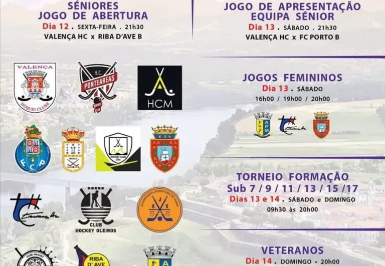 25 jogos proporcionarão três dias de uma autêntica maratona de hóquei em Valença, abrangendo várias gerações e níveis formativos e competitivos.